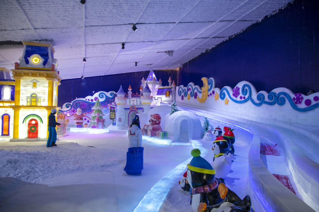 无需远行,在 江南 水乡就可以体验家 北欧 风情的雪世界,全天候、无时差,全年恒温零下的温度,一年四季都可以感受缤纷冰雪乐趣,室内雪道的专业雪道,落差很大完全不用担心因为是室内而没有户外的落差感,除了刺激的滑雪项目,这里还有冰爬犁、冰滑梯等游乐项目,在银装素裹的雪世界,演绎属于 江南 水乡的浪漫冬日里的欢乐,缓缓落下的漫天飘舞营造着浪漫的气息,徜徉在漫天飘雪的白色世界里。