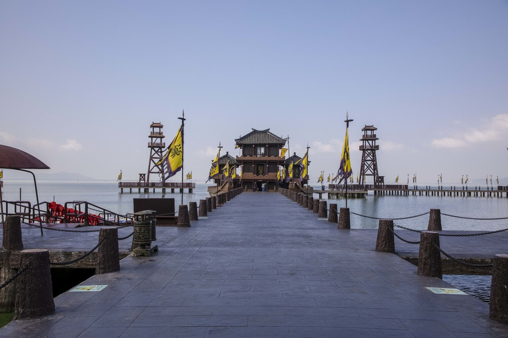 深秋的三国城,沿着 太湖 边走过去就是曹操水寨的基地, 太湖 畔秋风舒爽,秋水轻灵,一片祥和景象扑面而来。到处展现出它的非凡“气质”,让人深深着迷。