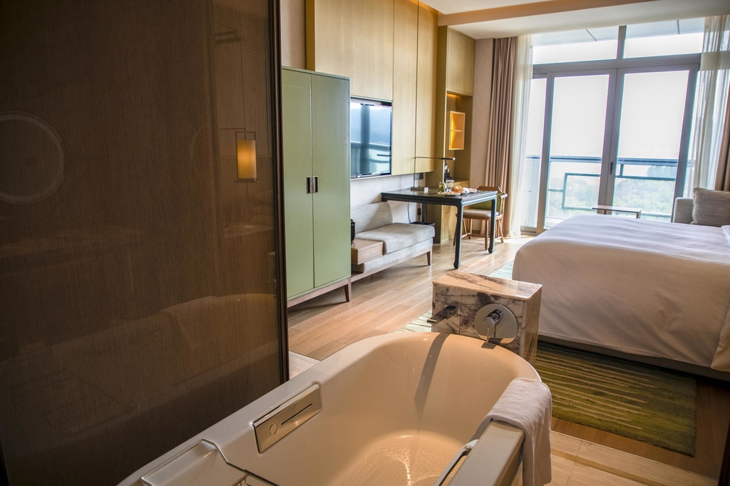 入住的房间有一个独立的小阳台,推开窗子就能看到蠡湖的景色,酒店与蠡湖近在咫尺,甚至可以感受到蠡湖的风迎面吹来,带来清新的空气,这才是高端的度假酒店该有的样子。