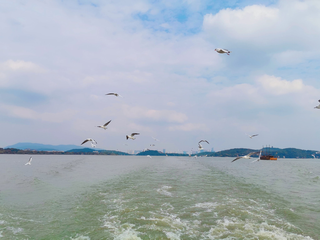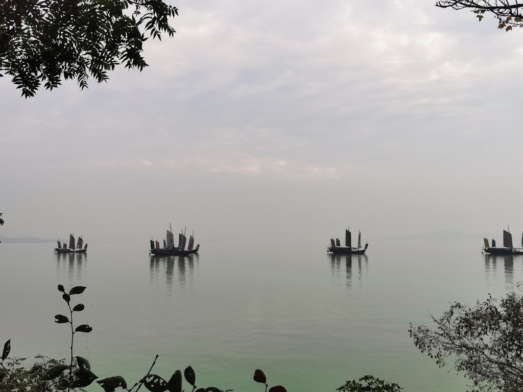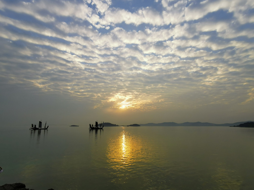 夕阳西落是太湖最迷人的时刻,在鼋头渚泛舟湖上,金黄色的湖面闪着耀眼的光,远处的帆影点点,铺满江面,无数金色鱼鳞斑驳跳跃,渔家风情一下子就呈现在眼前,非常壮美。