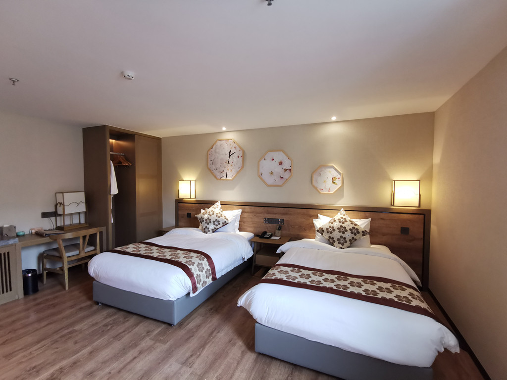 这么多景点,如果觉得逛不完的话,不妨选择住在鼋头渚景区里的樱花山庄,酒店里餐饮住宿会议样样俱全,并且整体也都重新装修了,环境焕然一新。外观上看似是个老山庄,走进酒店大堂、餐厅和客房耳目一新,完全不亚于高端度假酒店。