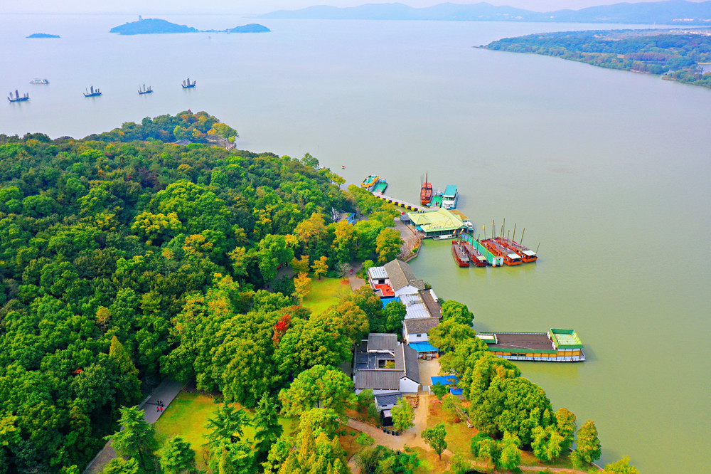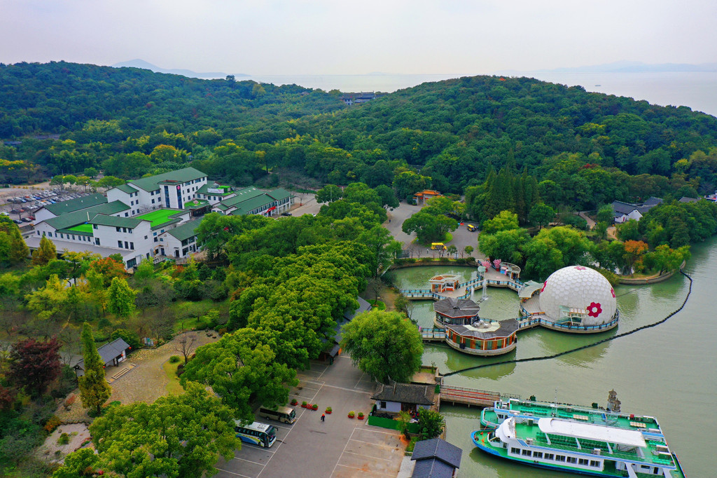 太湖仙岛,由三座湖中的小岛组成,所以本地人说它是三山岛、也叫“乌龟山”,因其外形类似一只浮在水面上的乌龟。从鼋头渚去仙岛,必须坐太湖渡轮,在湖面上行驶的时间约为20分钟。船票和岛上的门票均含在鼋头渚的大门票之内,游客不再需要单独购票。太湖轮渡开船的时间,约15分钟至半小时一班,从仙岛返程也如此。