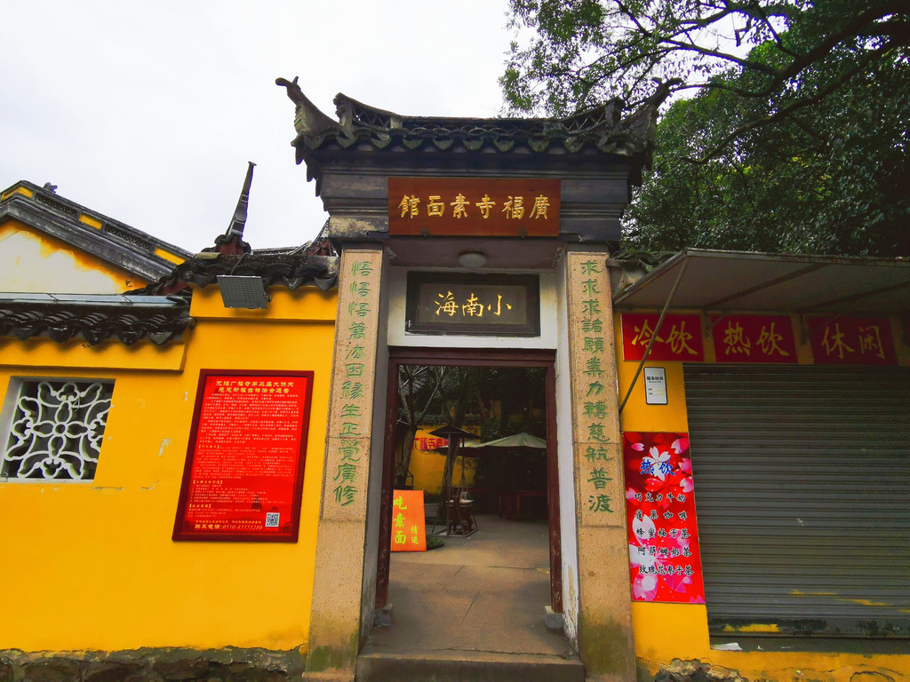 鼋头渚临太湖一面的峭壁上,有一座古寺“广福寺”,它的前身是建于南北朝的“广福庵”,也是古诗中“南朝四百八十寺”之一。它是在1925年的时候,从鼋头渚的后山搬迁到这里的,广福寺,也是个香火很旺的寺院。