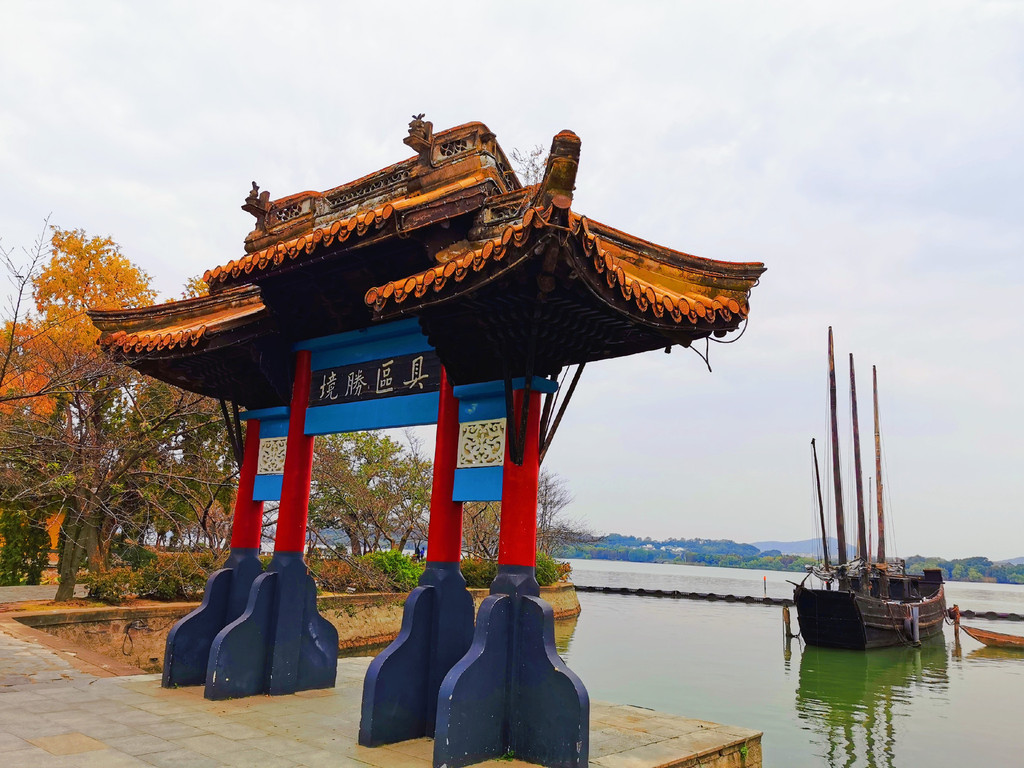 进鼋头渚大门,步行一百米,在右手的方向有个水景苑,这里可以坐摇橹船,因为水景苑种植了很多荷花,虽说已经进入秋季,水景苑摇橹船的船票每位20元,游玩时间约半小时。运气好的话,船娘会给你表演茶道,还有免费的香茗喝,因为茶道表演不是每天都有。