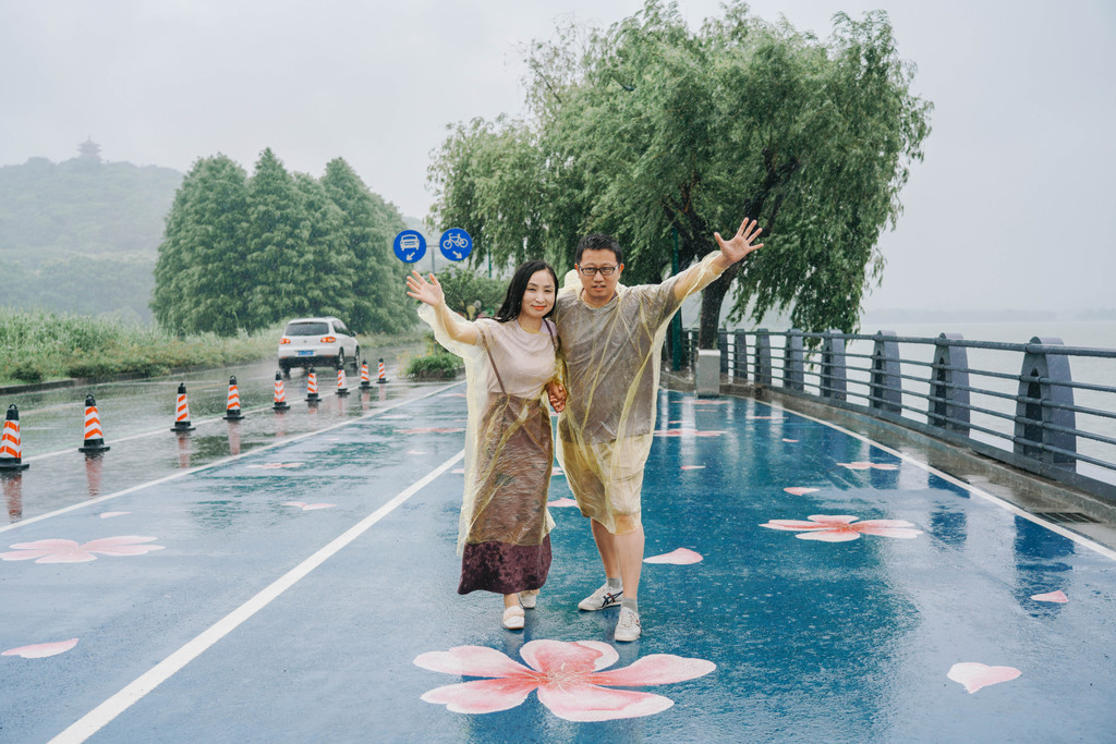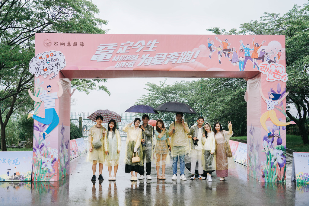 当然,参加景区的情侣趣味越野赛不过是个契机由头,但也因此见识了景区外围十里芳堤的樱花跑道,粉色的樱花就在脚下绽放,永不凋谢,可以说是国内最浪漫的跑道了,以致于当雨水打在脸上之际,我们仍在跑道上兴致盎然,为雨中能见证美丽的跑道本身而欢呼。