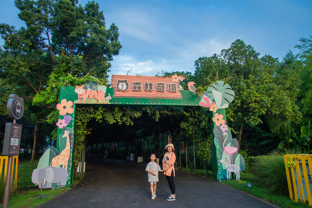 夕阳西下,美了一片天,走过植被丰茂的森林奇镜,一个神秘的绿色隧道,像极了一场时空穿梭,来到了动物的世界。夜游的小伙伴进园可以先选择前往动物园,和动物们近距离相约一夏的同时等待夜幕降临。