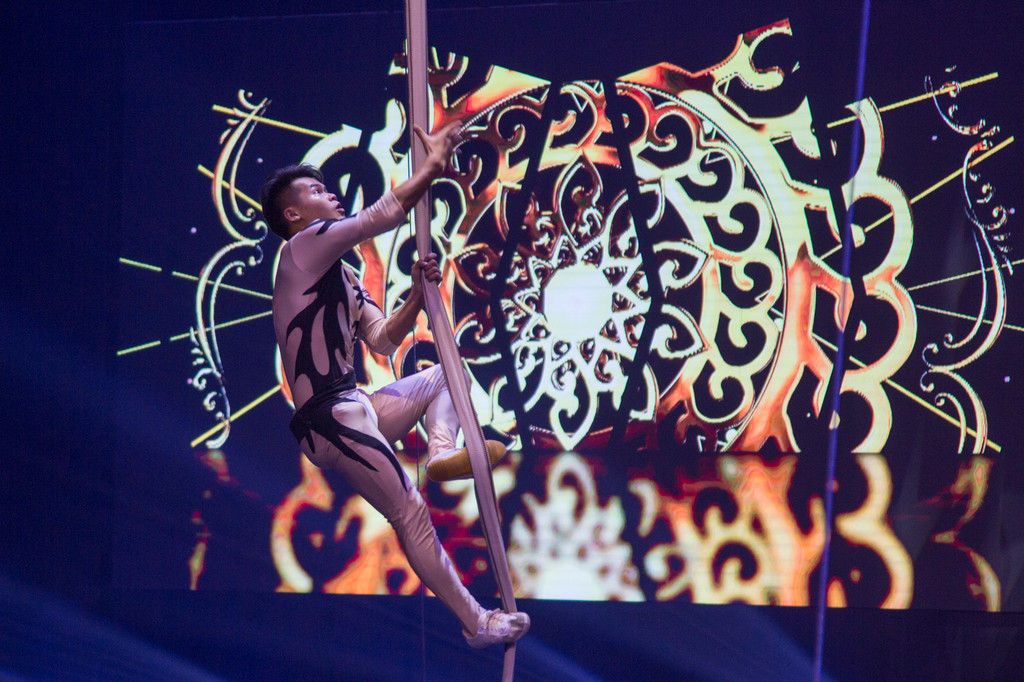 唯美绸吊的开场,惊艳了全场,一根绸吊上,优美的舞姿迎来阵阵掌声。