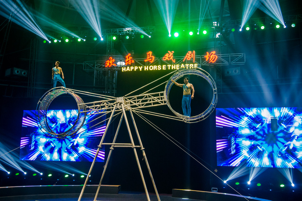 不管是钢丝上的独轮,还是惊险的生死轮,都带来了视觉的设宴,心跳也随着加速,屏着呼吸,看着演员们尽心的表演,真正的明白了,台上一分钟台下十年功的真理