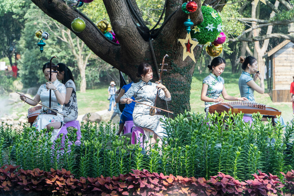 艺术家们在湖心小岛倾情演绎人间爱恋,古筝、二胡、笛子等乐器聚集,水雾弥漫的小岛散发别样魅力,和恋人静静聆听着悠扬的民乐,在心中诉说着最真诚的情感,放心说吧,你们的爱情上帝一定听得见。