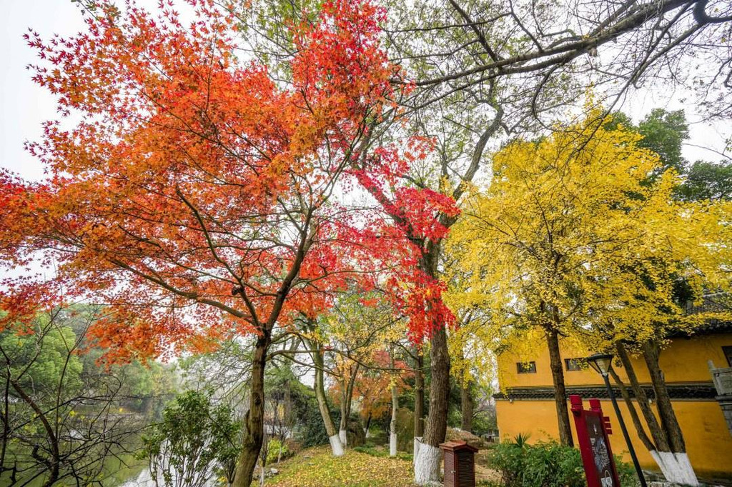深秋,香樟,红枫,银杏,色彩斑斓,引游人驻足。