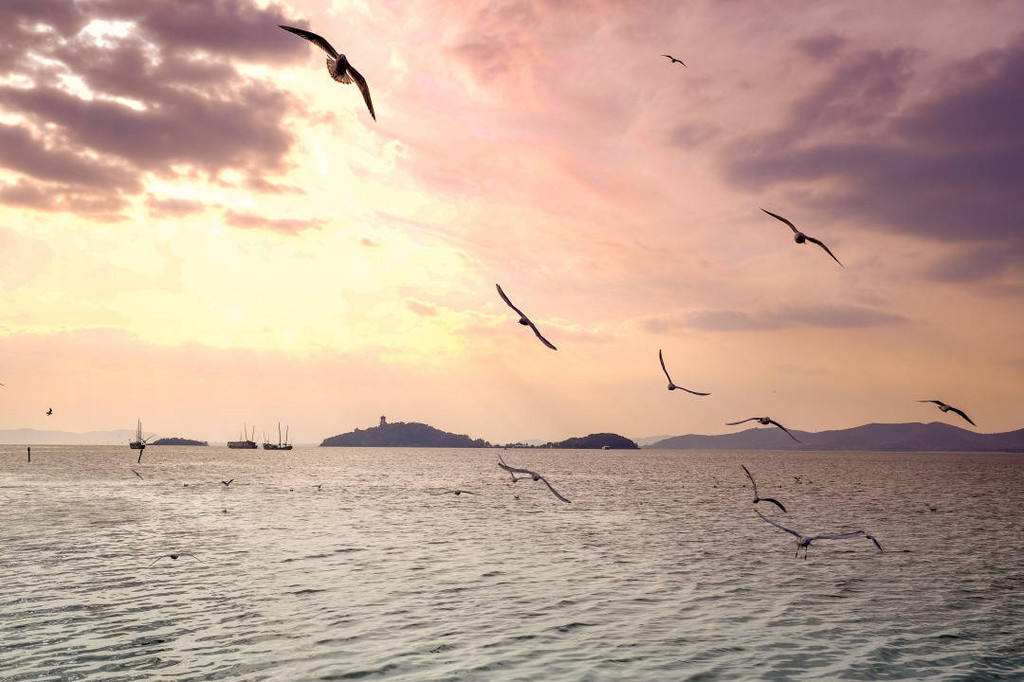 坐船15分钟一班上三山仙岛,红嘴鸥会跟船飞,非常壮观。