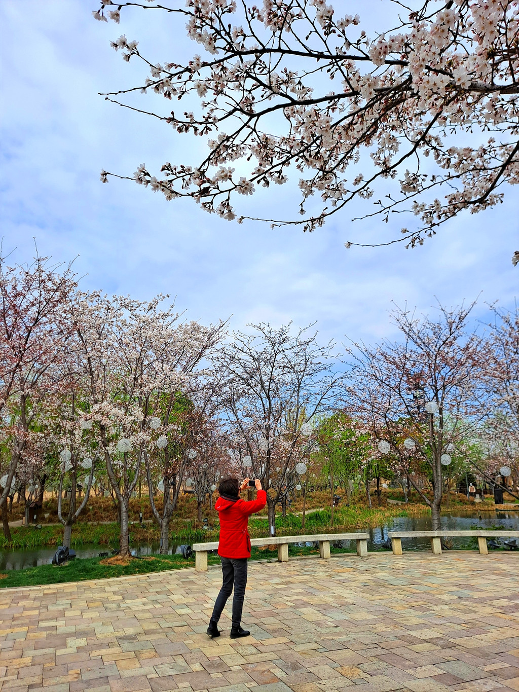 2、一般3月中下旬的时候染井吉野樱进入盛花期,也就是最佳观赏期了。但具体哪段时间进入盛花期需要看当时的天气状况,如果有冷空气的话,可能就会推迟盛花期。我们是20日去的,有部分樱花只是开了几成,离盛花期估计还需几天时间吧。