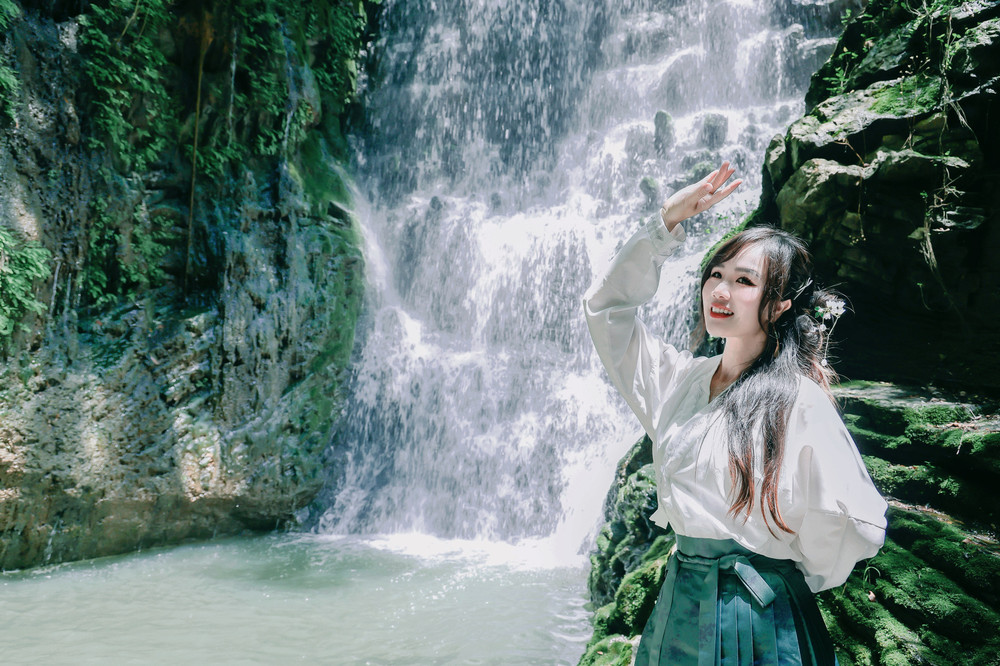 走出洞外,山水瀑布、亭台楼阁,小桥流水,景色一绝。