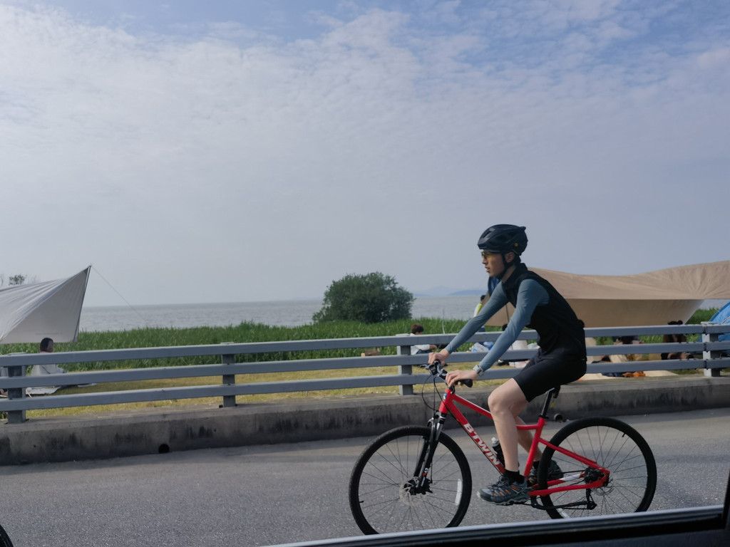 第三天,天气依旧好,计划是一路向西,然后转北去无锡。从长兴出发,有顺风,省了不少体力。10岁的小朋友也一路跟着我们,虽然一路走走停停,但也坚持了70公里。这一段主要是国道,骑行的体验一般,路上也得特别小心。进入无锡的环太湖公路,车辆很多,我们只能顺着车流通过,假期的景点真的是人山人海。