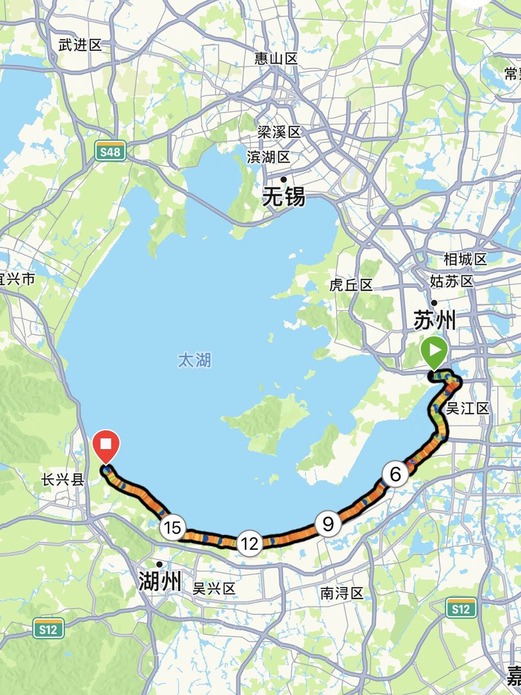 第二天 从苏州出发,目标长兴太湖博物馆,计划距离90公里