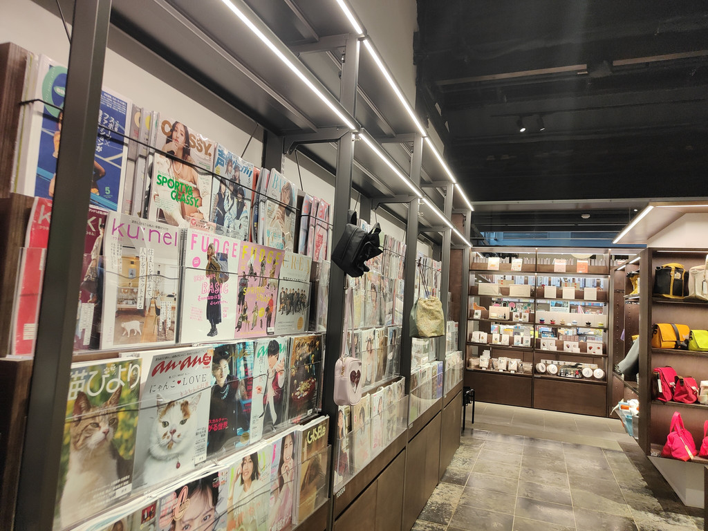 我们沿着街道漫步,有很多小资情调的店,我最喜欢的还是茑屋书店,这个名字听起来就很文艺。书店的空间很大,除了书籍,还有一些文具用品。可惜绝大多数的书都封塑,读者无法取阅,虽然书店一角有个看着很舒适也很安静的读书区。据说,这里还有音乐沙龙,不过估计是在周末吧。