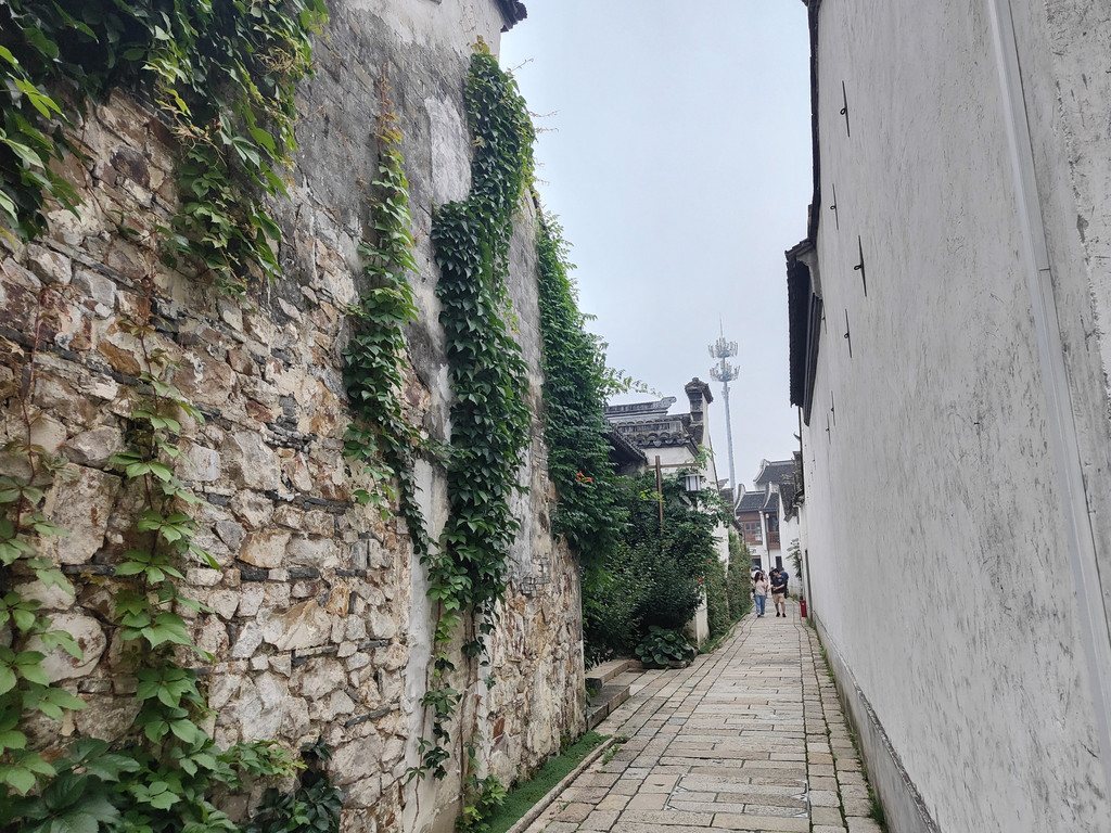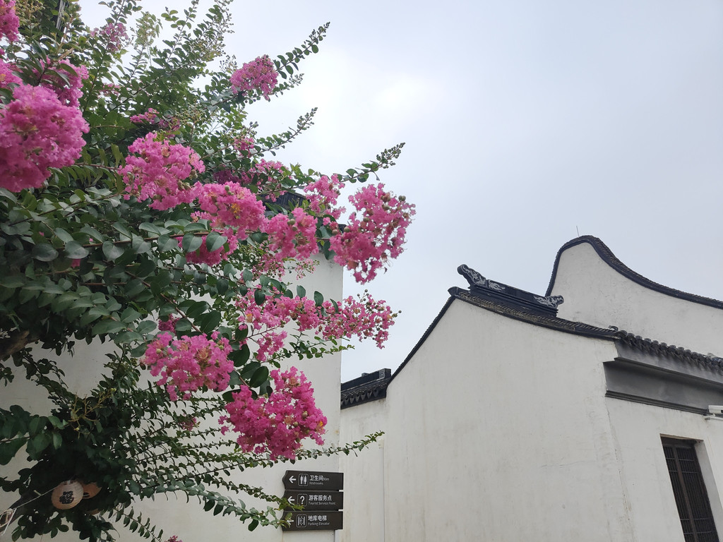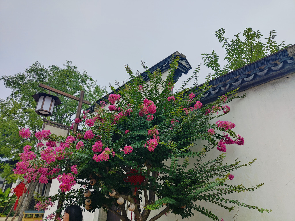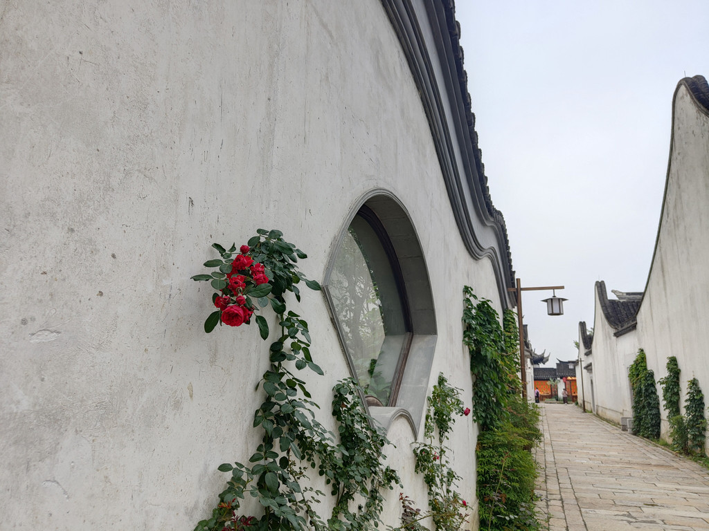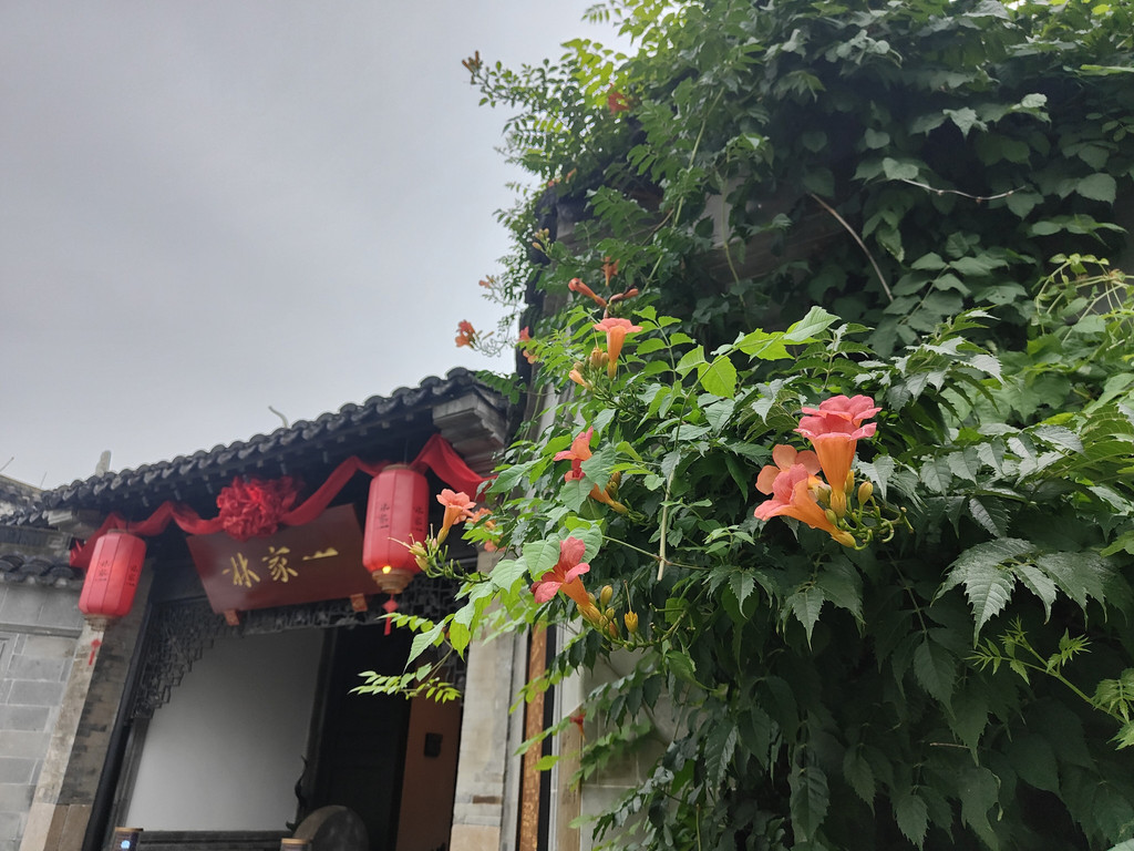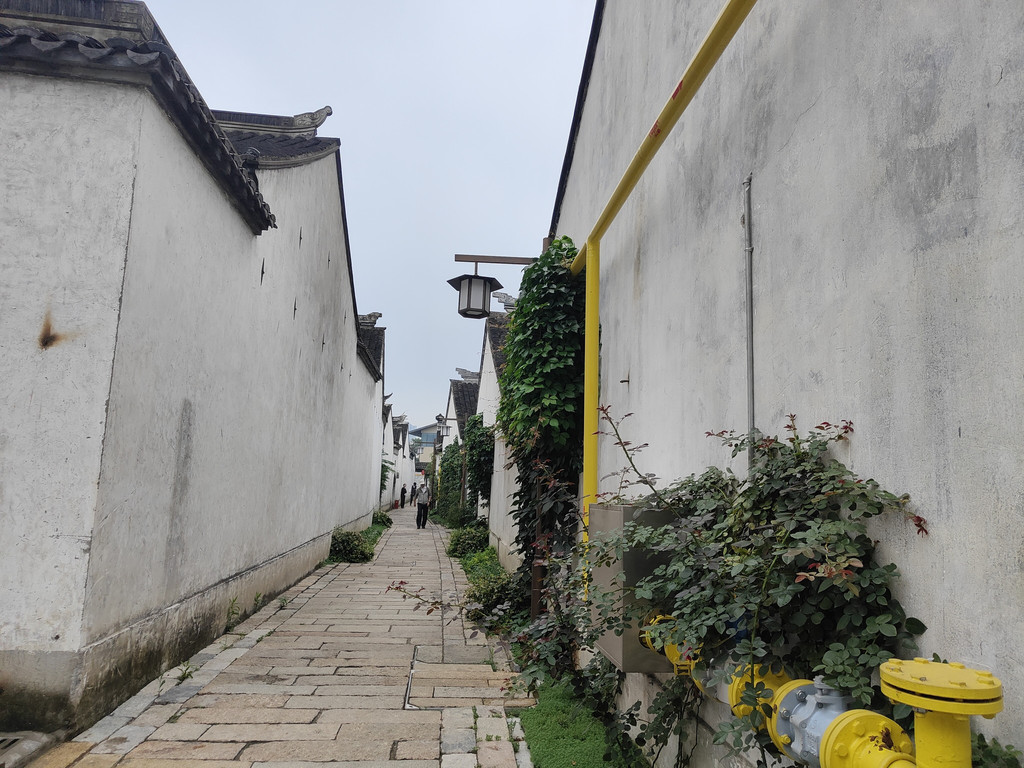 看看时间尚早,我们往古镇里走了走,弄堂里的凌霄花开了,衬着白墙,窄窄的弄堂显出了平时没有的活泼生气。