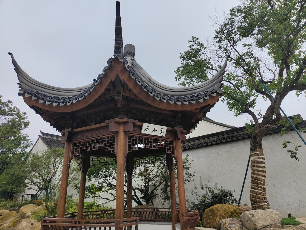我们返回塞博阿炳处,沿旁边的路往里走。背后居然还有一座听松台,环境倒是好的,只是这名字让我们觉得十分稀奇,毕竟周围虽然做了一些布景,有水有花,有矮生的水生植物,看起来像是一个生态浮岛,但不可能有松林,怎么听松?或许,这里头有个什么典故在,但看这亭子也是新建的。