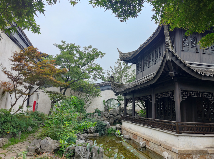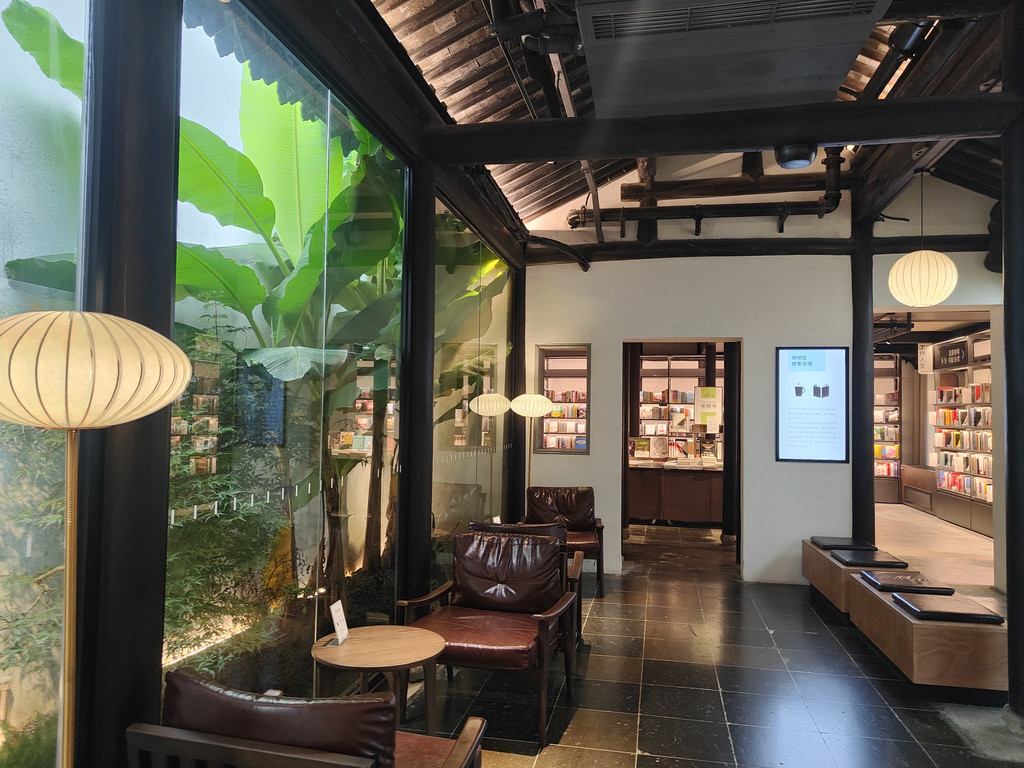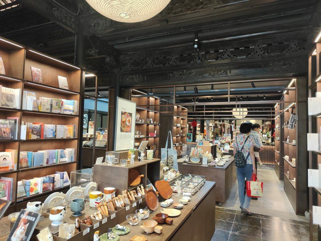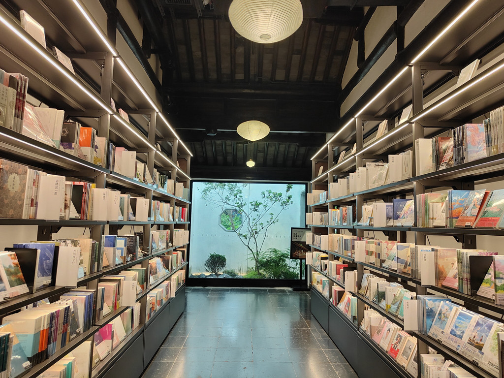 更绝的是书店居然还有一个庭院,这分明是个小型的园林,小桥流水,亭台楼阁,还有一座二层的水阁,就建在水中,外连长廊,小巧精致,安静古典,在这里握一卷书,真是神仙般的日子啊!
