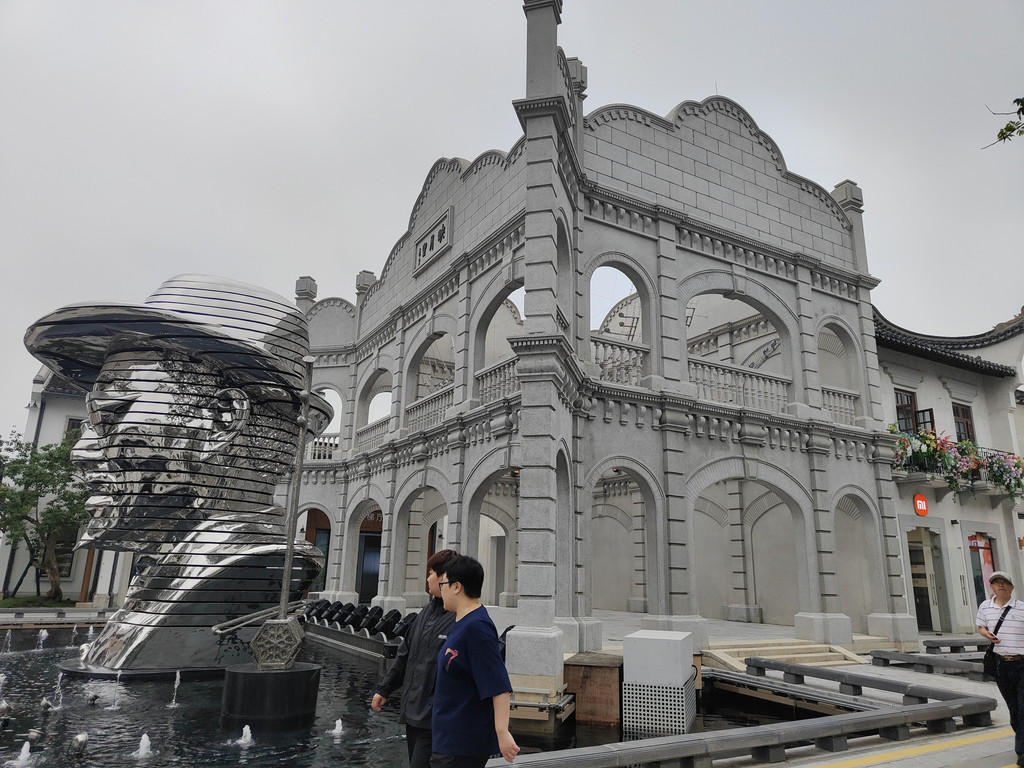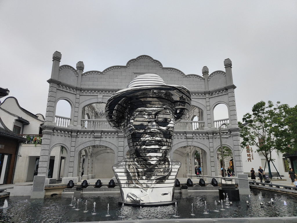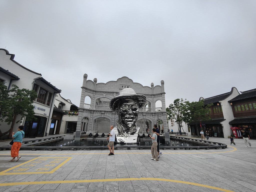 映月里街区依托惠山古镇,但又加入了现代文艺元素,形成了一个融合传统文化与现代文艺体验的特色街区。中心的阿炳雕像设计非常出彩,去年我就是因为这个造型急匆匆奔赴惠山古镇的。不过,白天只能看造型,晚上才能感受到其设计的匠心独具。原来他的各个部分,都是可以进行移动的,我在视频上见过,能展现出千变万化的姿态,最终巧妙地组合在一起,共同构成一个完整且生动的瞎子阿炳的雕塑形象。可惜我们今天没有打算晚归,所以注定见不到让人惊艳的一幕啦。不过,阳光下的阿炳,也很让人震撼。