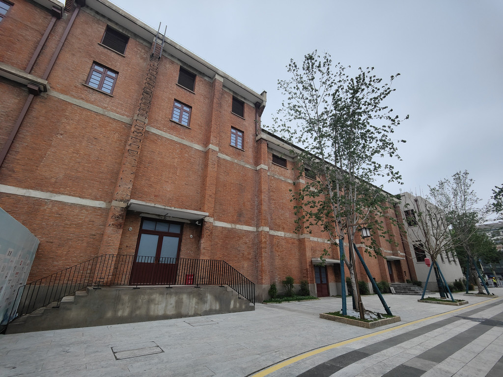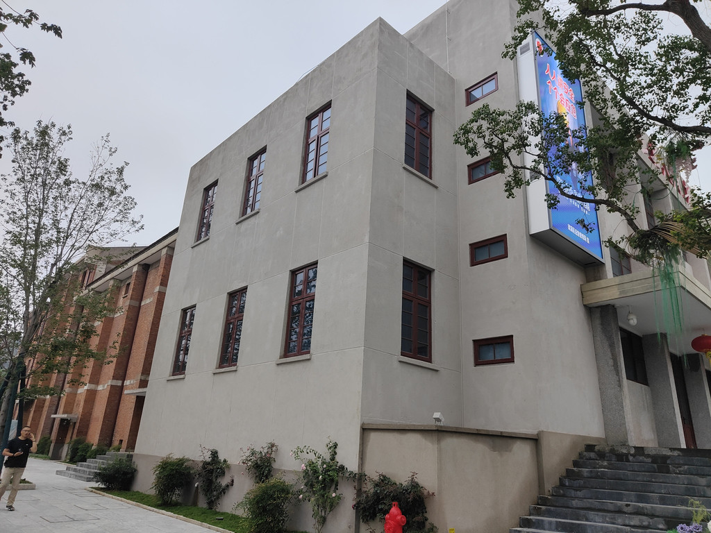 308礼堂在映月里的边缘,看起来颇有些规模,外墙是红色的横砌砖块,有些像民国时期的风格。不过门口一段却是大理石墙砖,看起来十分现代。