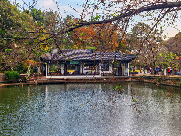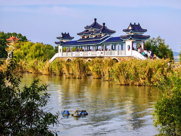走进蠡园风景区,人们可以看到这里大致分为四个游览区。西部有百花山房、四季亭等;东部有千步长廊、晴红烟绿水榭等;新区有春秋阁、邀鱼轩等;中部有假山群、莲舫等。漫步蠡园的青石板路,这里曲径通幽,来到湖畔只见湖中倒映着两旁的垂柳与粉墙黛瓦,偶有锦鲤摆尾划过荷塘,惊起细碎涟漪。