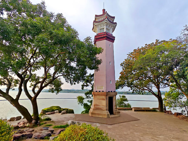 鼋头渚有一灯塔,临湖危立。1860年,无锡绅士华题蓉,一次舟行夜归,迷航误入湖心,险遭覆舟,其后裔在渚上立杆悬灯导航。1924年夏,锡湖轮船公司通船,地方人士集资建灯塔导航,以保航行安全。1982年进行加固翻新,重檐琉璃顶,金山石贴面,高度从原来的12.6米加高为13.1米,改变了原似“铁钉”船的形象,既能导航又点缀了景色。