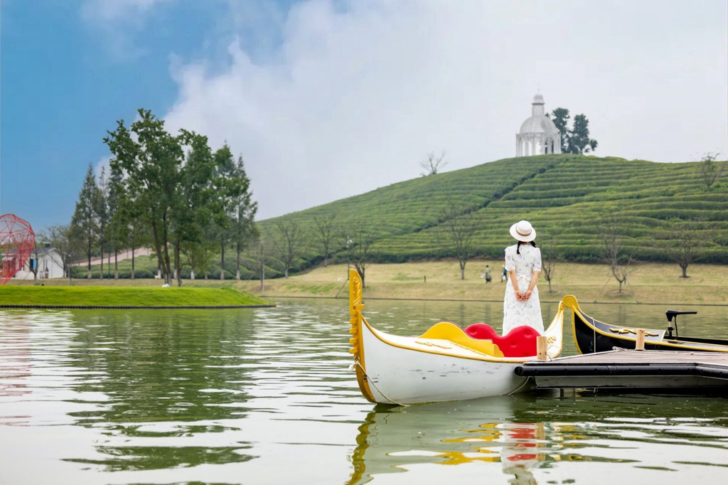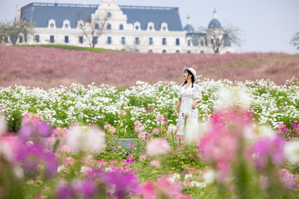 坐上复古小火车,穿越花海和茶园,风中裹挟着各种馥郁花香,五颜六色的花田像打翻的调色盘,在花神广场漫步,在粉黛花海中舞蹈,在醉蝶花的海洋中徜徉,小火车穿梭在郁郁葱葱的花海之间,时不时响起的铃声飘荡在上空。浓郁欧式风情的街道与城堡,仿佛“塞纳河畔”的小镇,浪漫的四季花海,打造出所有包含欧洲想象的梦境。 花田里除了看花,还有很多好玩的