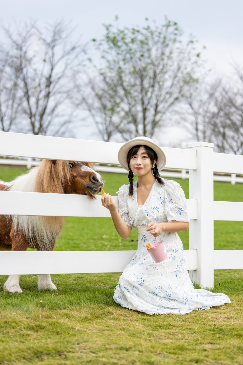 一场和小动物们约会,喂肥壮的矮脚马吃胡萝卜,还有可爱的矮脚羊静静吃草,被一团团像白云的羊驼追着走,羊驼性格各不同,有的呆萌反应慢,有的超没耐心,喂它慢了还会吐口水。抬头看见鸽子在空中飞舞,池塘里鱼儿游,孩子们专心和小动物玩耍,画面真是台治愈了。