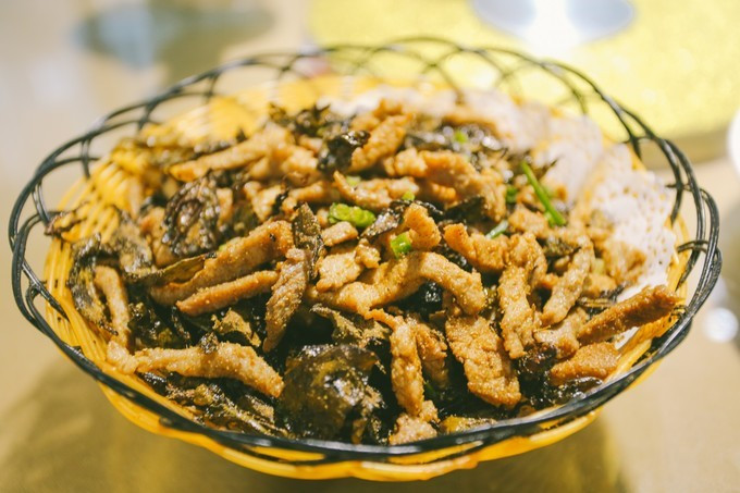 临走前,还不忘再打卡一家当地的网红餐厅——炊烟山房菜。尝了这一道当地特色的肉桂飘香。把肉和茶叶炒在一起做菜,大概也只有在与茶为伴的 武夷山 有了吧。