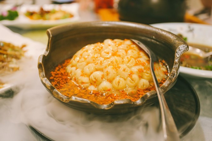桂花建莲是餐厅的招牌菜,点餐时服务员自豪地介绍道,他们家的这道菜,一直被其他餐厅模仿,却从未被超越。我向来不爱吃莲子,报着试试看的心态点了一份,没想到“真香”了!太好吃了!直接被我们光盘~