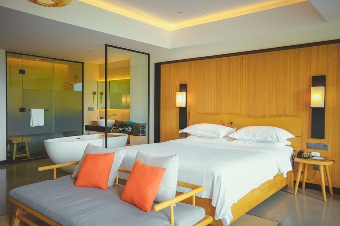 在房间里看着山景,泡一个澡,别提有多惬意了。