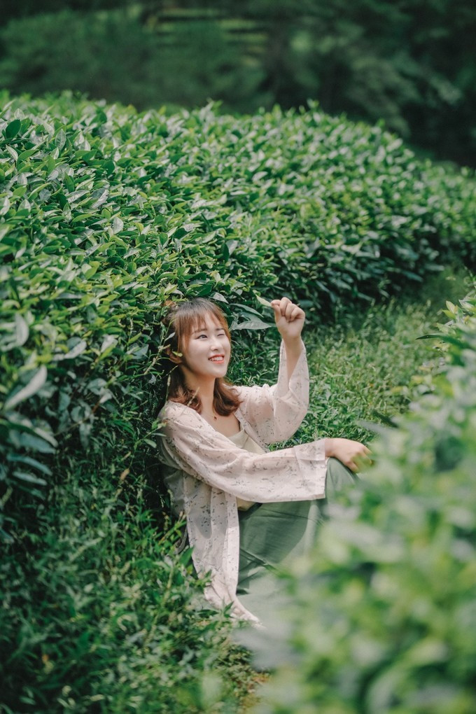妈妈置身茶园中,乐开了怀,她大笑的模样好似回到无忧无虑的少女时代。