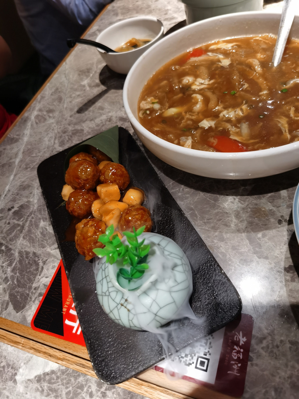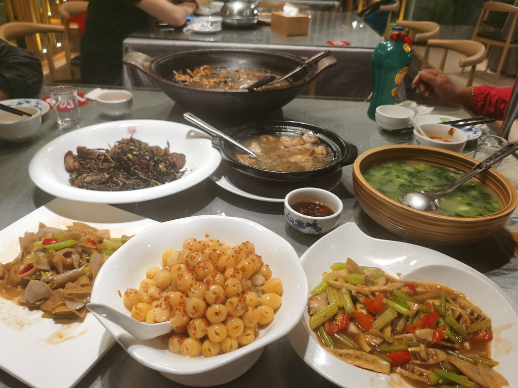 从万春园出来,即走回酒店(武夷山庄)开车去吃饭,堂宴 老武夷,选了个套餐,又加了一个泉水土猪肉,口味不错