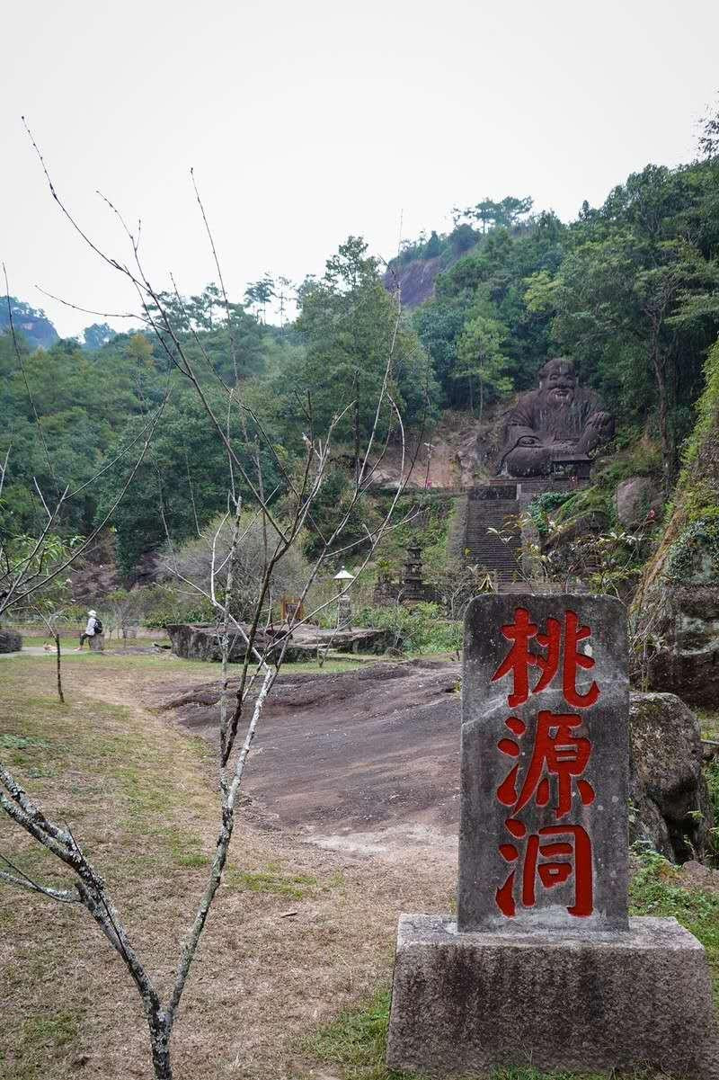 看到一大尊老子的石像,桃源洞就到了,在福建只知泉州的清源山老君岩有一尊,竟不知在武夷山内也有,走过漫长的路,看到此景,似有误闯世外桃源之感。