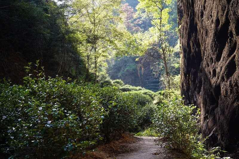 来个官方版的说辞:从大红袍到水帘洞的一条路,叫岩骨花香漫游道。岩骨花香漫游道上的风景绝美,人也相对更少,一路走下去幽静惬意,鸟语花香,而且整个武夷山最好的茶叶产区都在这条路上周边散布,因此也被本地人称为“最贵最浪漫的路”。