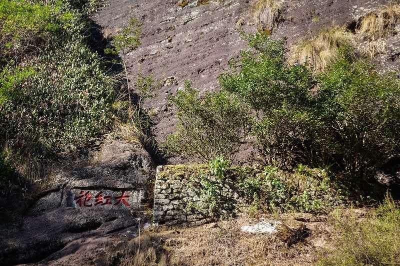 如图,你知道大红袍是哪个么,和岩石缝中长出的植株混杂在一起,一时间真的分辨不出来。