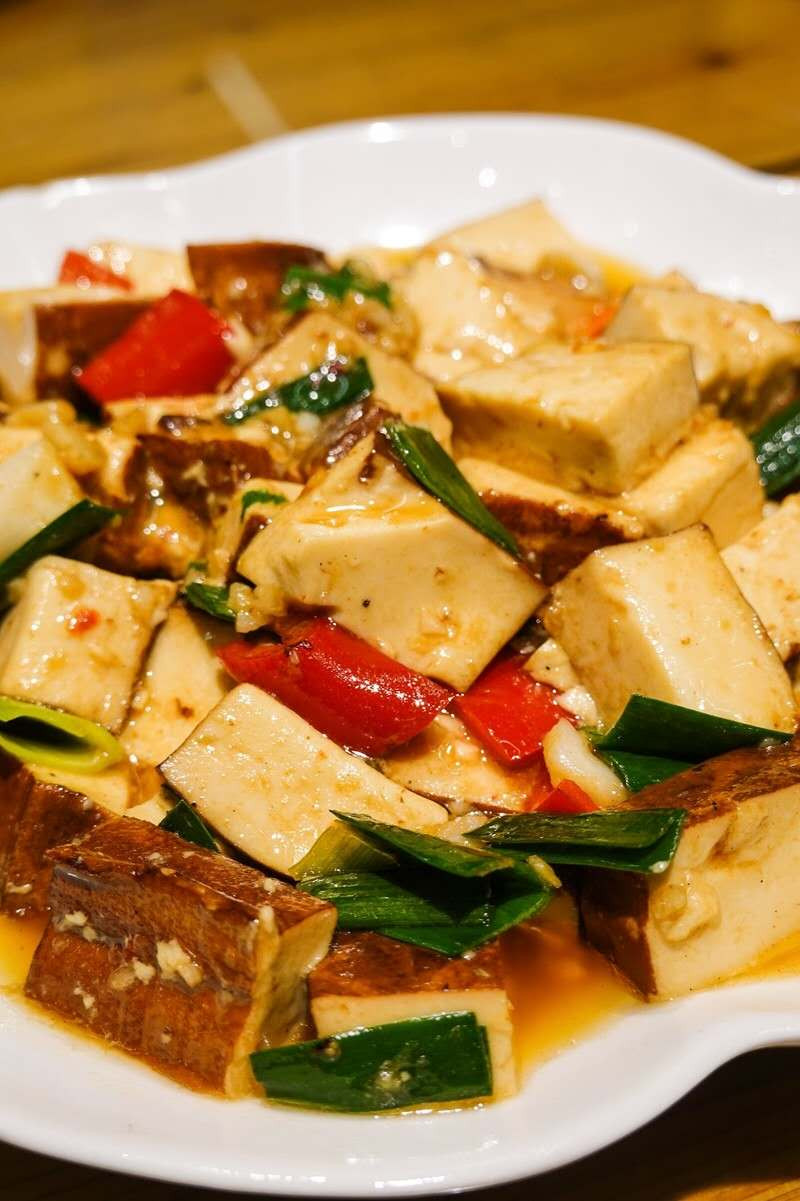 以茶入菜的代表之一,便是这岩茶豆腐。将岩茶的茶味与豆腐鲜嫩的口感相结合,清爽不腻,唇齿留香。