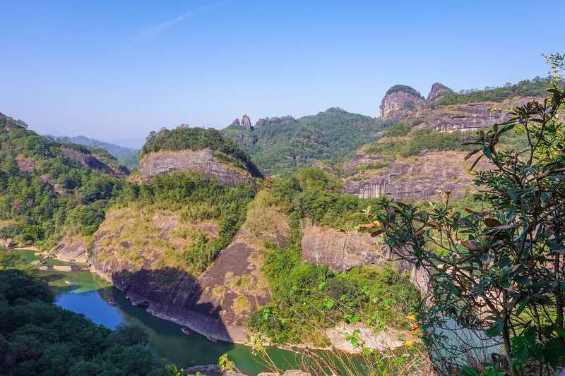 武夷山最为重要的观光部分,就在它的山水上,普通的山,只观山色,而武夷山需要从不同角度去观望,通过山色衬水色,水色映山色,领略它独有的秀美。