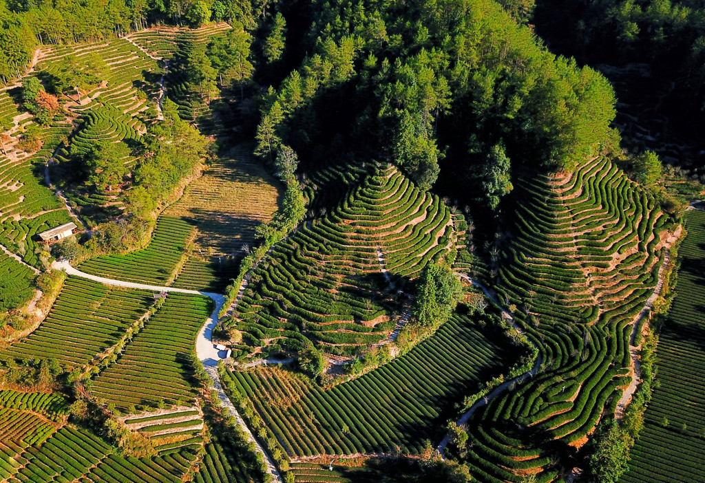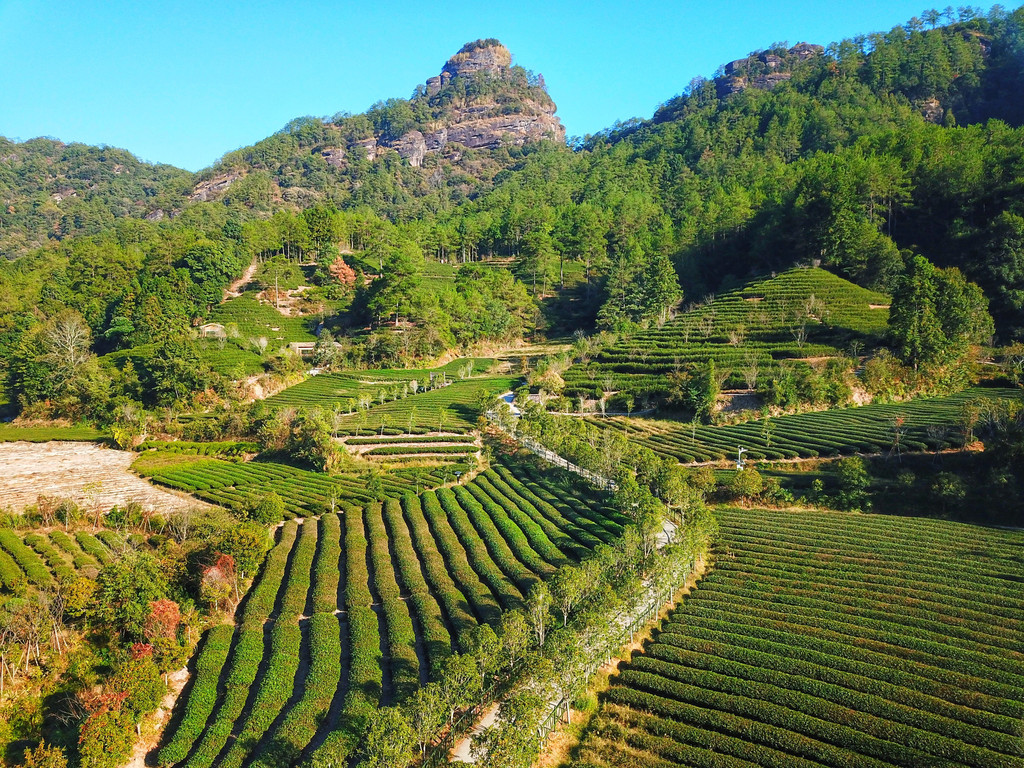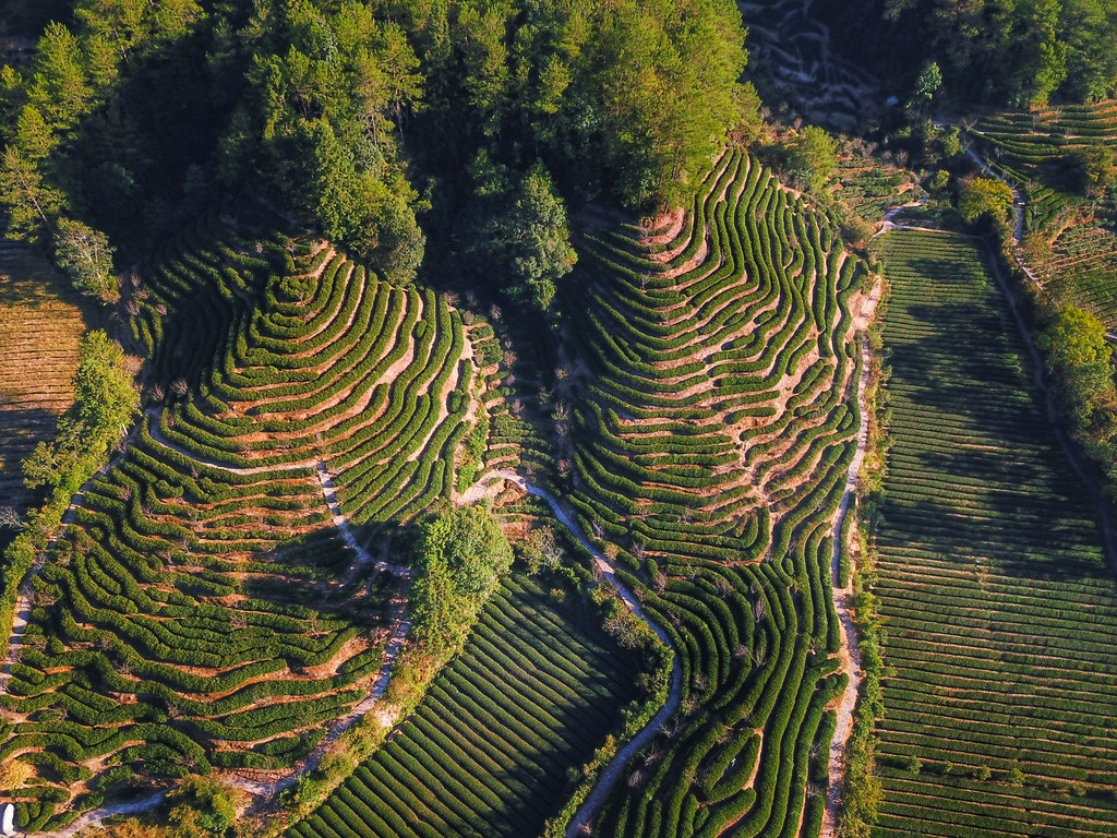 果然,在武夷山探访了几片茶园后,发现有一片茶园从高空俯瞰竟然就像是一颗茶树,有这样的巧合,这里不出好茶都难了。