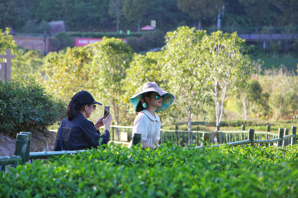 漫步在这里,四周静俏俏的,任你多复杂的心絮都会瞬间平息,呼吸着茶树透出的淡淡香气,唤出一颗清雅的心,恬淡适然。