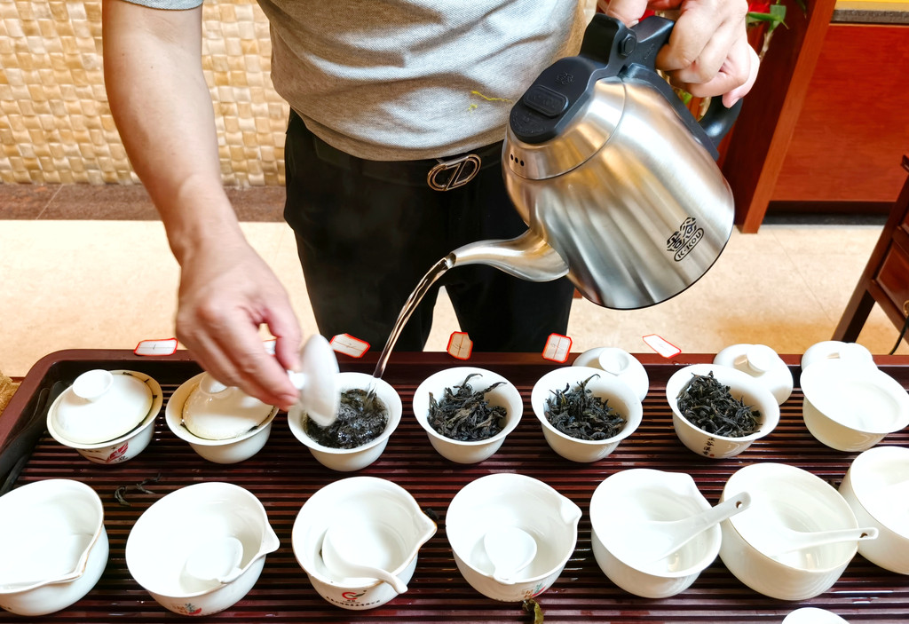 对于我们这些小白而言,自己拼配一款茶,显得有些生疏。不过老师很耐心的指导了我们,我们也算是入门了。我们拼配的茶叶是“正谷溪香”,还没泡就已经被茶香“灌醉”了。大家各自拼配了一款自己的“新茶”,最后互相品尝,盲评选出了口感最佳的拼配茶,我的竟然得了第一,真不错……