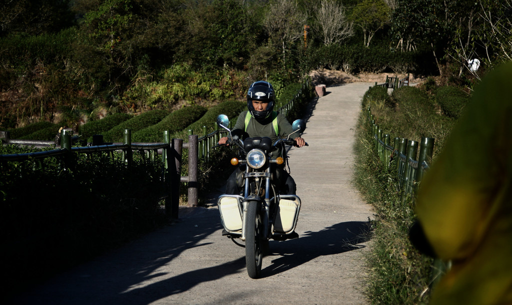 不知不觉中,天色已经渐晚,但是这片茶园的绿意把整个山间烘托得很“亮堂”,若不是山野间的蚊虫喜欢“欺负”我这个外地人,还真是想再多待上些时间。