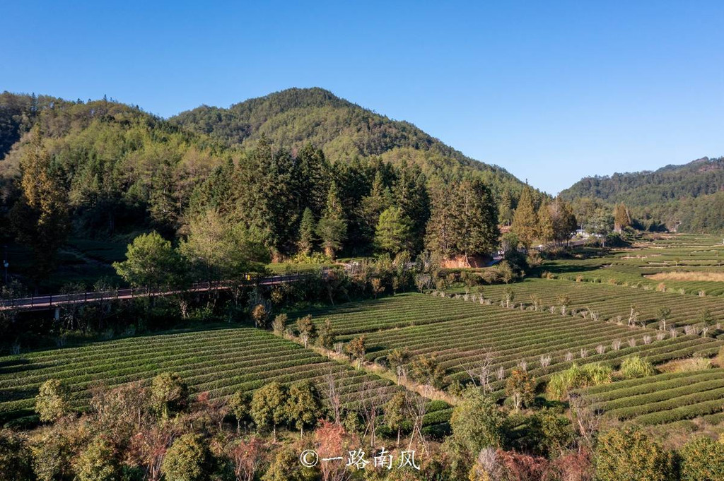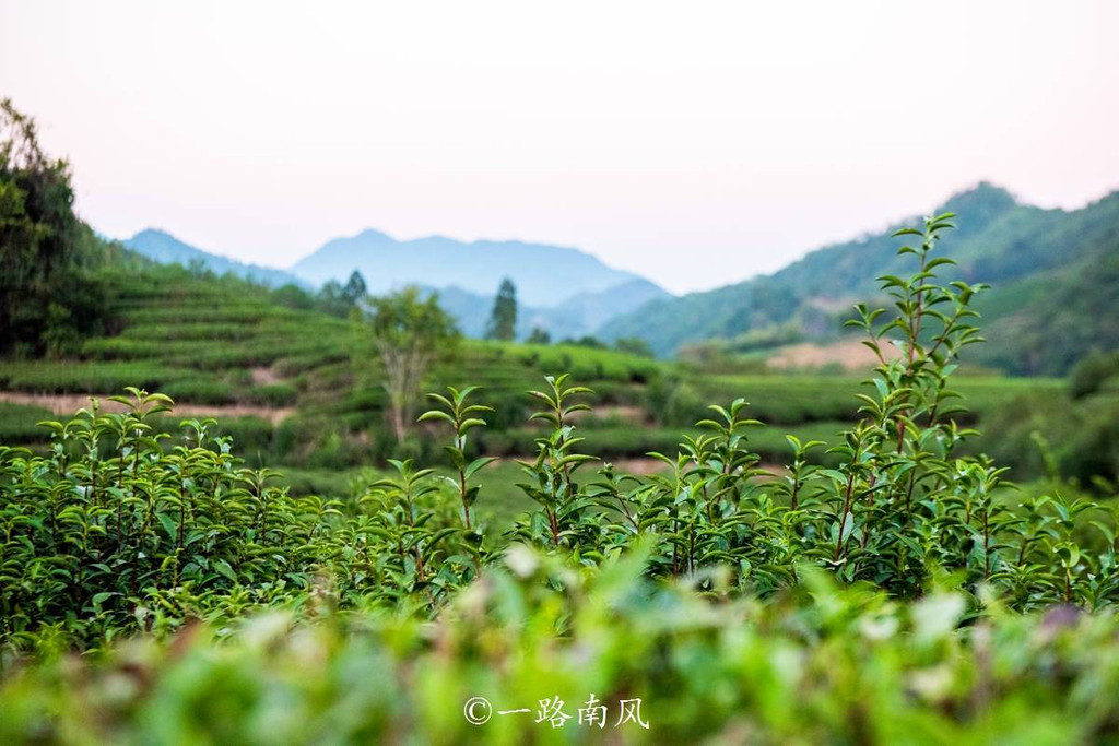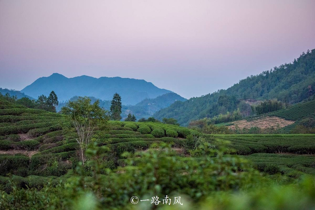 星村镇的四公里茶园位于地势相对平缓的山谷梯田上,层层叠叠的山峦衬托绿意盎然的茶园,美出写意水彩画的意境,黄昏光线柔和,视觉效果更加迷人。
