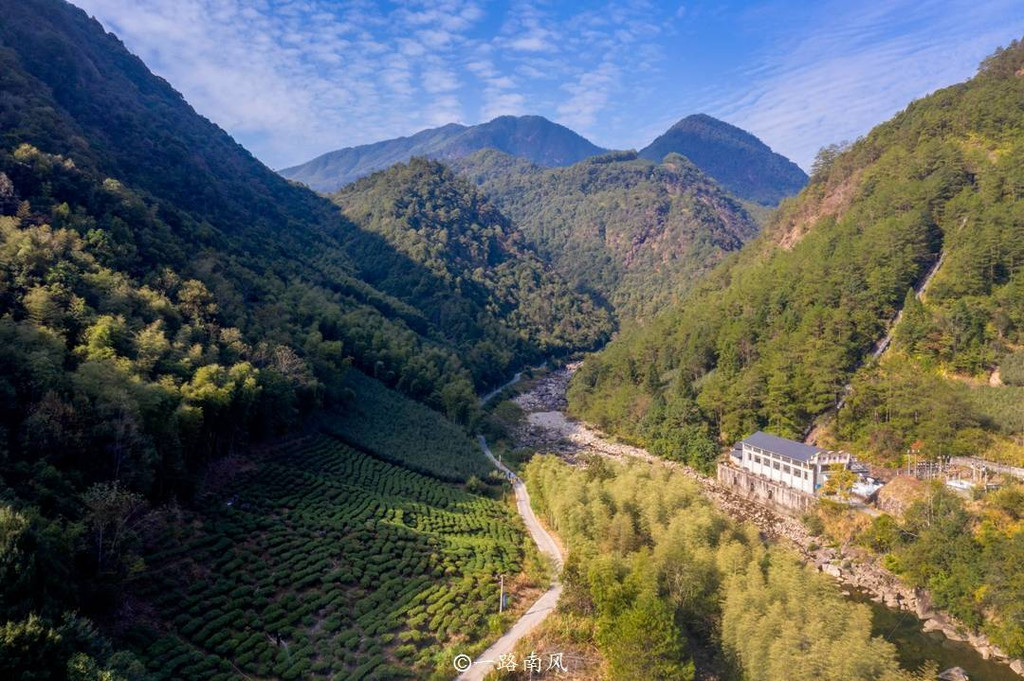 沿着吴三地的溪边小路向前游览,沿途翠竹摇曳,茶叶飘香,不知不觉想起陶渊明的《桃花源记》。