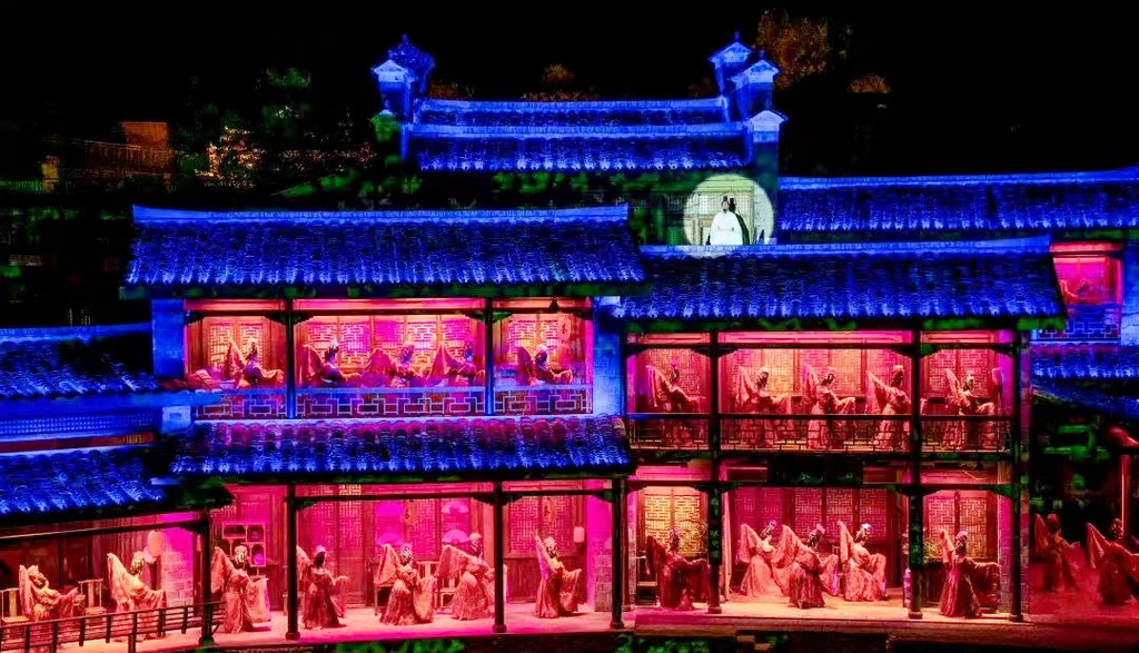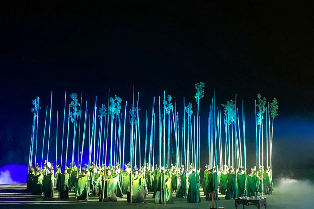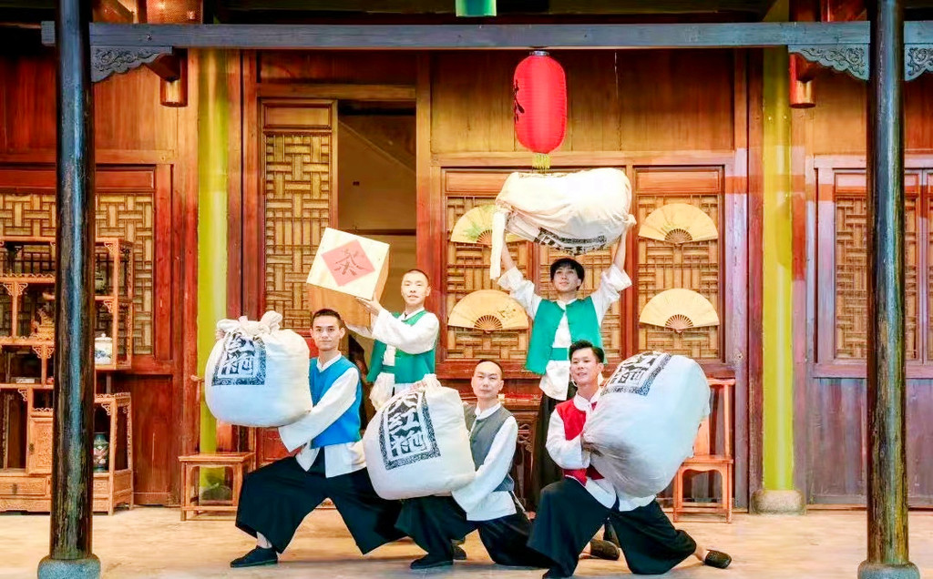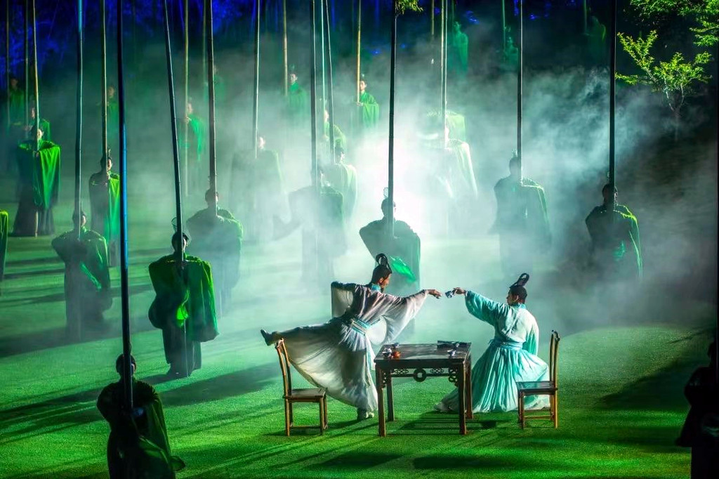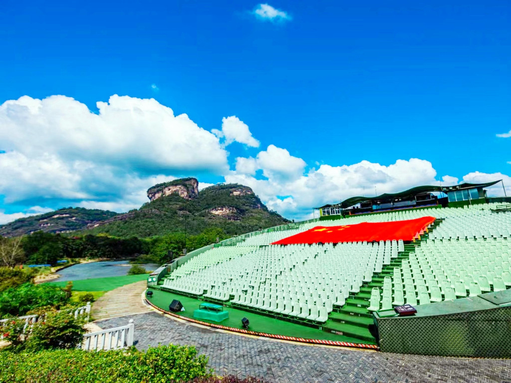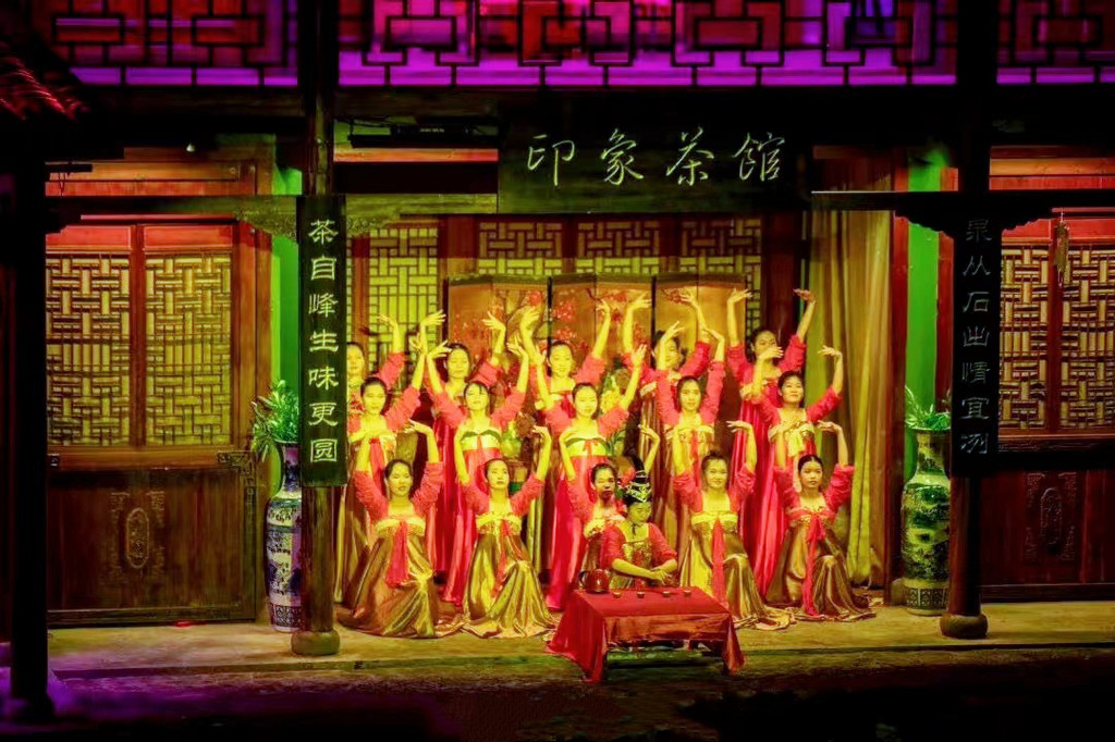 印象大红袍出自张艺谋导演之手,以天为幕,以地为台,以大王峰为伴,是全世界唯一展示中国茶文化的大型山水实景演出,是唯一在世界自然与文化双遗产地演出的印象作品,有1988个座位,3000盏电脑灯,舞台视觉总长度12000米,四面舞台相连,绵延出万米长卷的壮阔气象,是世界上最长的舞台,十五块电影银幕完美地融入到自然山水之中,造就世界上最大的“演出茶馆”,全球首创360度旋转观众席,每五分钟内即可完成一次360度平稳旋转,沉浸式体验,舞台视觉极为震撼,演出总共分为九个篇章,设计上更是融入了唐代宫廷舞、竹林侠客等诸多元素,呈现一场声势浩大的茶文化盛宴,随着红衣女子的撑船动作,观众席缓缓转动,恍如人在船中,进入幻境中的古人世界,一幕幕在眼前舒展开来,演员们用动人舞姿演绎岩骨花香,用如泣如诉的表演诉说大王与玉女的爱情故事,用一盏香茶带来幸福和感悟,正可谓武夷有山、山中有茶、茶中有人生天地,绝对是一场看完不后悔的系列,只有亲临现场才会感受到它带来的视觉冲击。