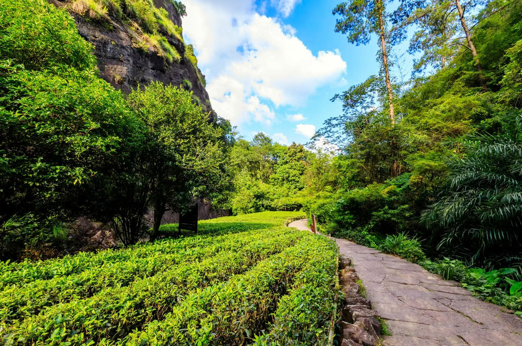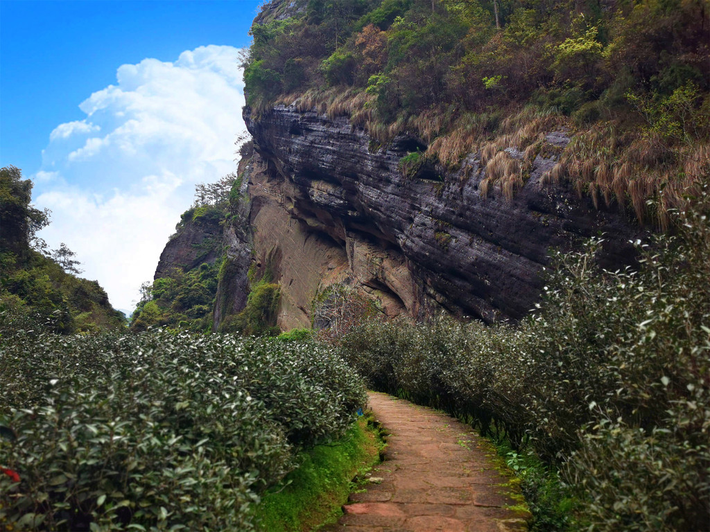 武夷山是中国乌龙茶和红茶的发源地,以半发酵的武夷岩茶(属于乌龙茶)、全发酵的正山小种(属于红茶)最为知名,武夷岩茶是乌龙茶的鼻祖,始于明朝,盛于清代,茶树生长在岩缝之中,是具有岩韵(岩骨花香)品质的乌龙茶,为中国十大名茶之一,以"香、清、甘、活"而著称,兼具绿茶之清香,红茶之甘醇,是中国乌龙茶中的上品,已有1000多年历史,以独具岩韵而享誉中外,早在十七世纪已远销欧美。