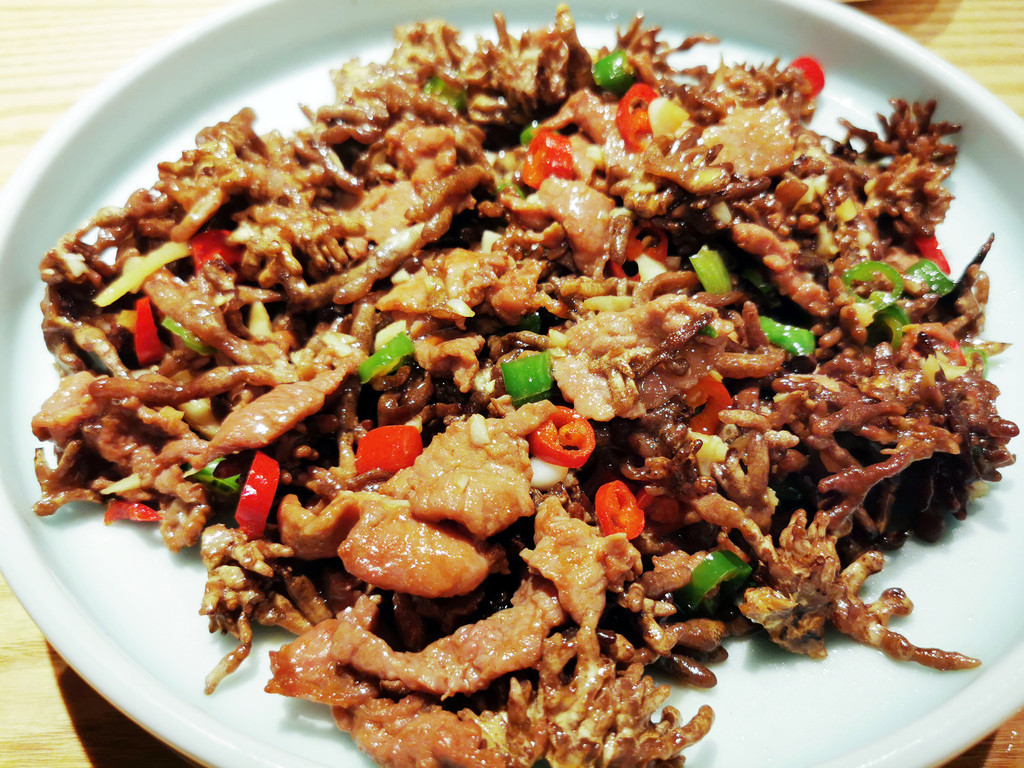 午餐随意,晚餐就要来顿硬的,棠宴老武夷本地菜,茶博园停车场对面,几层都是网红餐厅,用餐环境很雅致,配的正山小种也很好喝,最特色的菜就是大红袍茶鱼,绝对是武夷山独一份,这样的鱼肉烹调手法并不多见,份量很足,鱼肉肉质鲜嫩,口感微辣却又能吃出淡淡的茶香,猫爪菇,武夷山特有的野生菌菇,外形奇特,形似猫抓而得名,搭配鲜嫩牛肉一起炒,吃起来咯吱咯吱,脆爽可口。