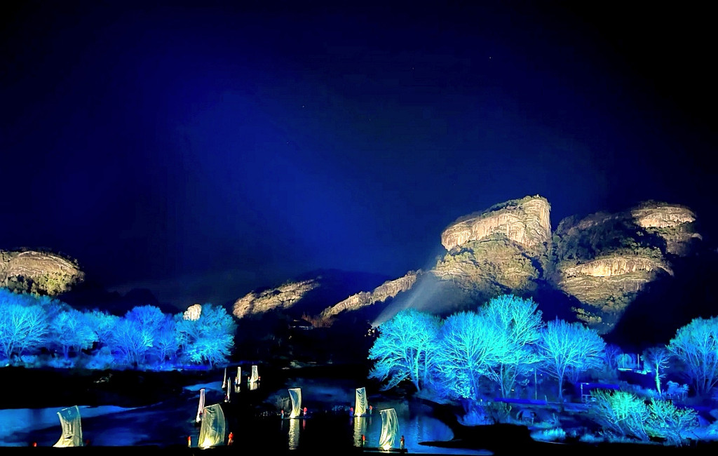 早餐后不想进景区,只想随意走走呼吸山里最新鲜的空气,那不如就漫步在崇阳溪畔,不需要跋山涉水也可以欣赏碧水丹山,这里也可以说是玩武夷山最“不累”的一条路线。崇溪漫步道,全长5.4公里,从上浦大桥到九龙湾,沿步道还设有“瑞彩祥云” 、“王者归来”、“虹桥飞渡”、“玉潭白鹇”、“福茶飘香”、“九曲泛舟”等六个网红观景台,沿途绿树成荫,鲜花烂漫,一路上还可欣赏对面景区三仰峰、三姑峰、幔亭峰、大王峰、玉女峰等武夷山美景,俯仰碧水丹山间,不觉已是景中人,入夜灯光亮起,又是一番不同的感觉。