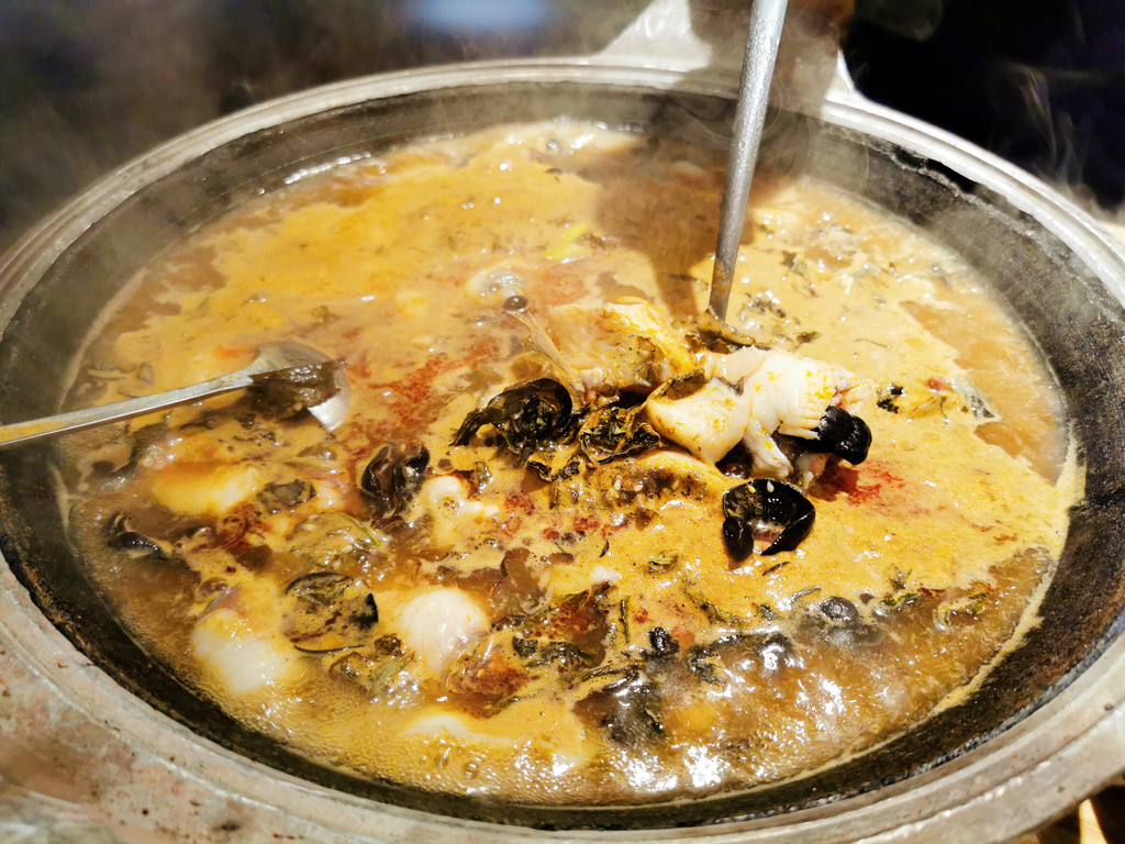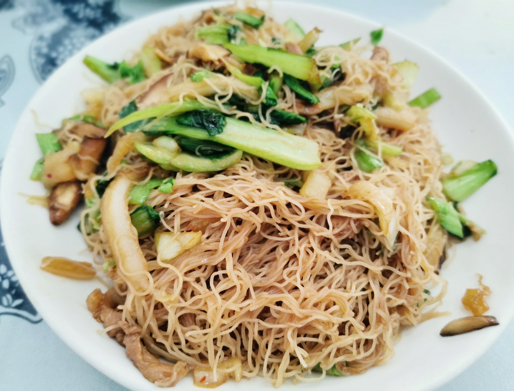 午餐错过了饭点,就到后街的老梁炖罐炒饭馆随便吃点,这是个老式饭店,本地人吃了十几年的小食堂,小巷子里的武夷山味道,五花八门的炖罐倒是品种很丰富,汤浓料足,价格却也不菲,再配个兴化炒米粉或是雪菜炒饭,炒饭粒粒分明,炒粉虽细如丝却韧性十足,很有锅气。